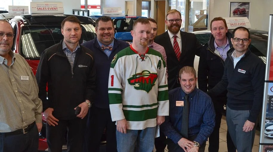 Jason Rynders (center) is an Iraq war veteran and employee of Go For It Gas located next to Lupient Kia. Jason was participating in an event called the "Nearly Naked Ruck March" put on by The 23rd Veteran, a Minnesota non-profit that focuses on helping veterans with PTSD. Earlier this month, his donation box was stolen with all the money in it. When a team of employees here at Lupient Kia found out about the theft, they put together a fundraiser to help Jason recoup his losses and raised $720 dollars. Jason ran the event on February 27th in Duluth, wearing nothing but long underwear and a 50 pound backpack and ended up raising over $2000 dollars!