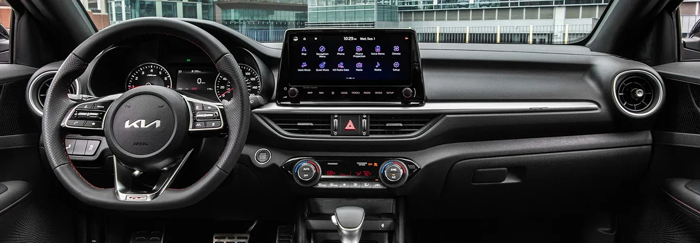For enhanced comfort, choose a trim level with heated and ventilated front seats, dual-zone automatic climate control, and a leather-wrapped flat-bottom steering wheel. Discover the full range of features and options available in the 2024 Kia Forte interior at Lupient Kia of Brooklyn Park today.